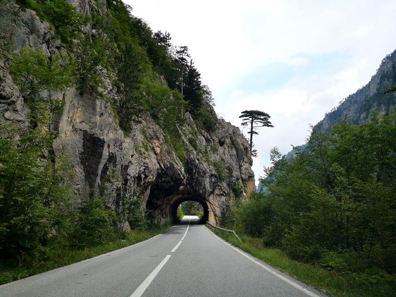 Буквально на выезде из Подгорицы нас встречают крутые обрывы вертикальных скал каньона реки Морача. Двигаясь вдоль каньона, на протяжении длительного пути с одной стороны любуемся изумрудными водами бурлящего потока реки Морача, а с другой - величественными горами.