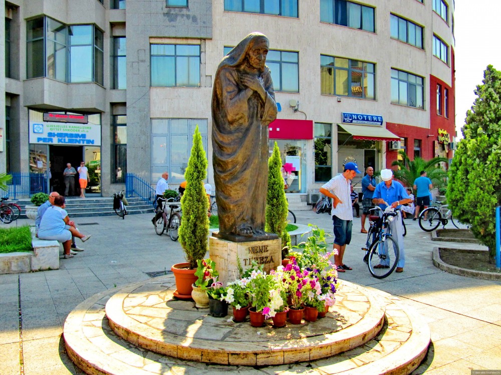 На этой пешеходной улице можно также сфотографироваться у памятника матери Терезы. Мало кто знает, что она урожденная албанка.