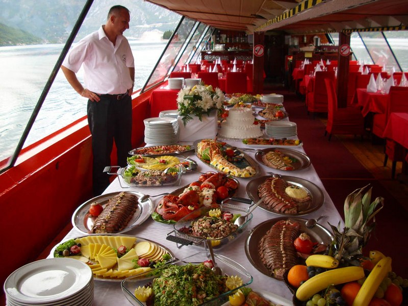 После купания Вам будет предложен обед на корабле. В меню ресторана включены как рыбные , так и мясные блюда.