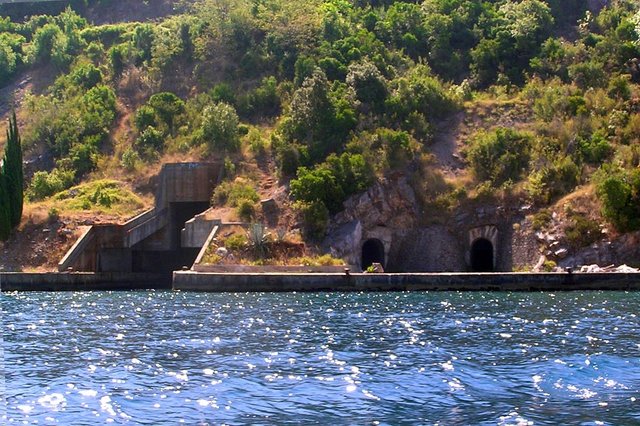 Двигаясь дальше по курсу, мы увидим старую секретную военно-морскую базу. Это большие туннели в скалах, находящихся у моря, куда заплывали на ремонт подводные лодки и катера во времена Югославии.