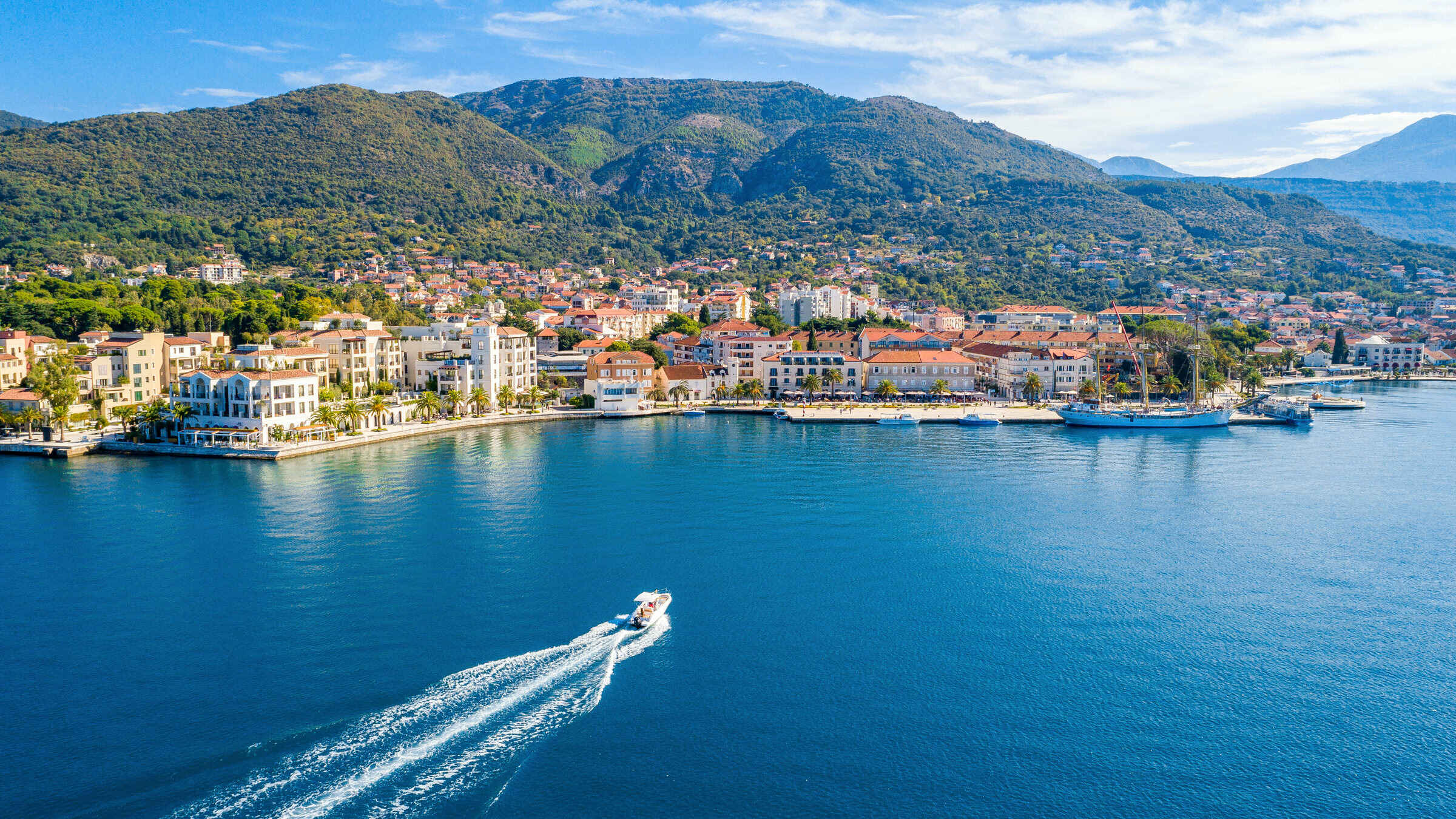 Наш экскурсионный автобус доставит Вас в город Тиват - город тихий и зелёный с великолепным портом ( Porto Montenegro) для белоснежных яхт и катеров, город с уютными ресторанчиками, бутиками и пятизвездными отелями. Здесь мы садимся на корабль и начинаем наше путешествие.
