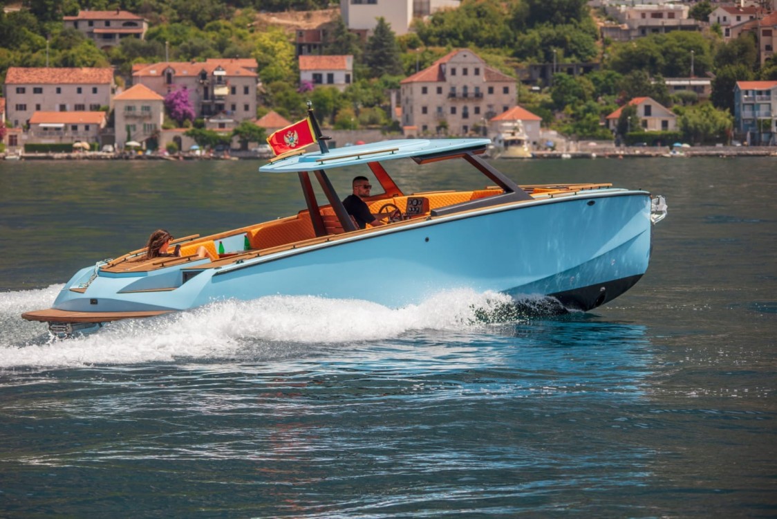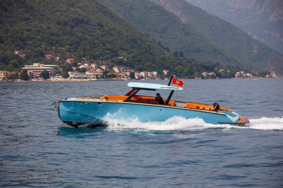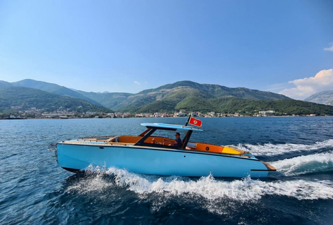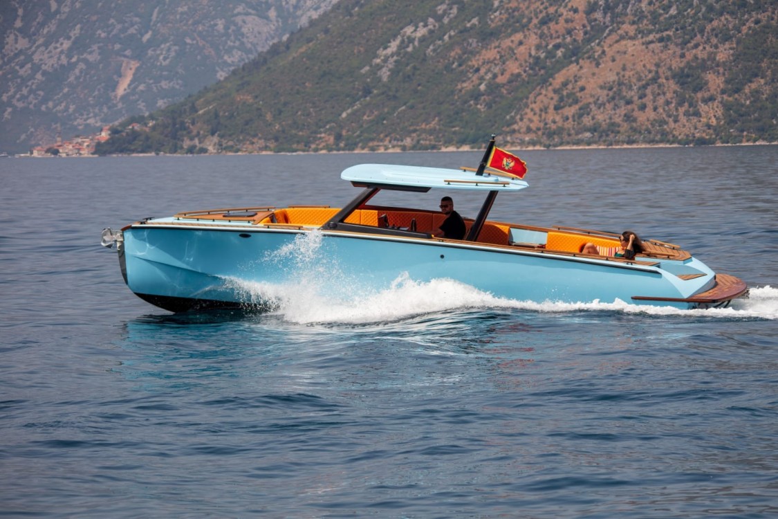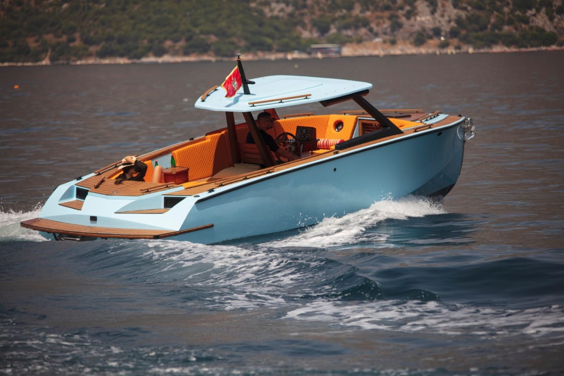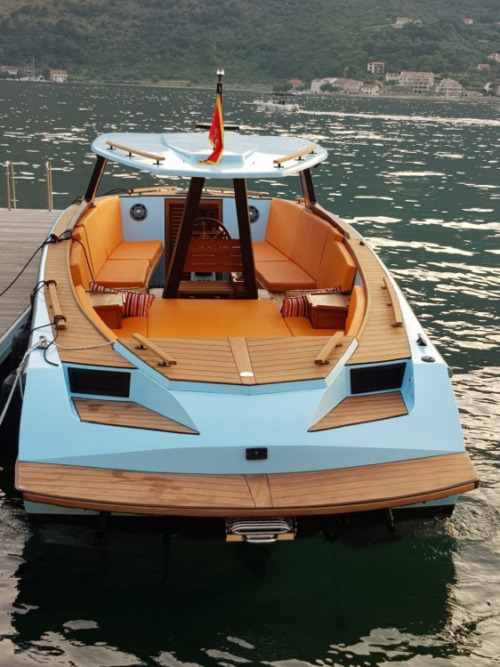 Катер оборудован тентом от солнца, лестницей для купания, душем с пресной водой, зоной солярия, фуршетным столиком, навигацией, музыкой
